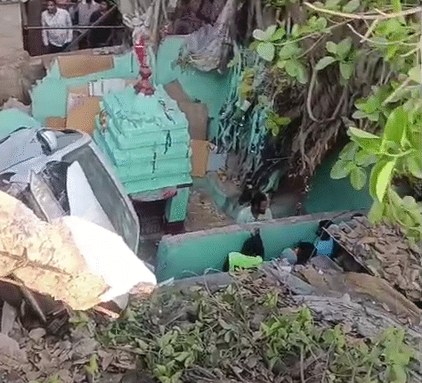 ବ୍ୟାରିକେଡ୍‌ ଭାଙ୍ଗି ତଳକୁ ଖସିଲା ଗାଡ଼ି