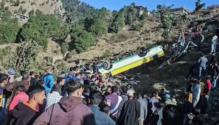 ଓଡ଼ିଆ ନ୍ୟୁଜ୍: ହିମାଚଳ ପ୍ରଦେଶରେ ଭୟଙ୍କର ସଡ଼କ ଦୁର୍ଘଟଣା; ୧୩ ମୃତ।ସିର୍ମୋର ଜିଲ୍ଲା ହରିପୁରଧାରରେ ଖାଇକୁ ଖସିଲା ବସ୍। ସିମ୍ଲାରୁ କୁପ୍ଭି ଯିବାବେଳେ ୫୦୦ ଫୁଟ୍ ତଳକୁ ଖସିଲା ବସ୍।ଆଉ ୩୩ ଯାତ୍ରୀ ଗୁରୁତର ଆହତ, ହସ୍ପିଟାଲରେ ଭର୍ତ୍ତି।ମୃତକଙ୍କ ପରିବାରକୁ ୨ ଲକ୍ଷର ଅନୁକଂପାମୂଳକ ରାଶି ଘୋଷଣା କଲେ ପ୍ରଧାନମନ୍ତ୍ରୀ। ସୂଚନା ଅନୁଯାୟୀ, ଏଥିରେ ପ୍ରାୟ ୬୦ଜଣ ଲୋକ ଥିଲେ।
