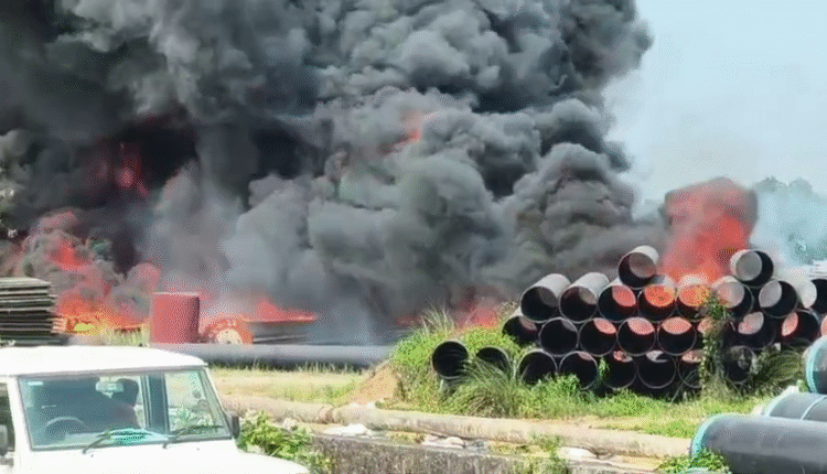 ଆଇଓସିଏଲର ତୈଳ ପାଇପ୍ ଲାଇନ୍ ବିଛାଇବା କାର୍ଯ୍ୟ ପାଇଁ ପାଇପ୍ ଷ୍ଟକୱାର୍ଡରେ ରହିଥିଲା । ପାଇପ୍ ଉପରେ ପିଚୁ ଓ ପ୍ଲାଷ୍ଟିକ କୋଟିଂ ରହିଥିବାରୁ ପାଇପ୍ ଭୟଙ୍କର ଭାବେ ଜଳିବାକୁ ଲାଗିଛି। ଅଗ୍ନିକାଣ୍ଡର କାରଣ ଅସ୍ପଷ୍ଟ ରହିଛି।