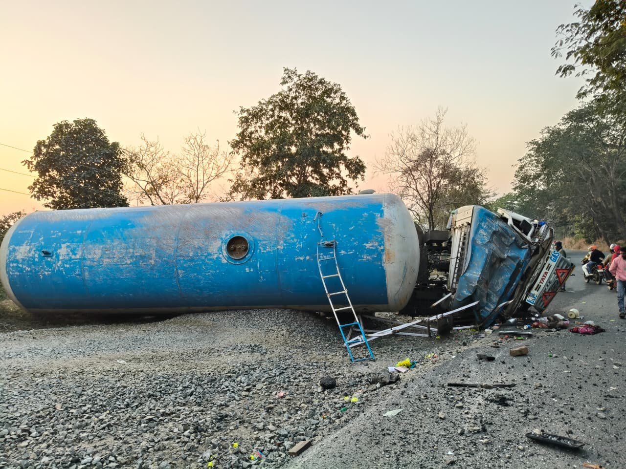 ଓଡ଼ିଆ ନ୍ୟୁଜ୍: କଳାହାଣ୍ଡି: ବଞ୍ଜାରୀ ଘାଟିରେ ଓଲଟିଲା ଗ୍ୟାସ୍ ବୋଝେଇ ଟ୍ୟାଙ୍କର।ଛତିଗୁଡ଼ା-ସିକେରକୁପା ମଧ୍ୟରେ ବଞ୍ଜାରୀ ଘାଟିରେ ଓଲଟିଲା ଟ୍ୟାଙ୍କର। ଗ୍ୟାସ୍ ଲିକ୍ ଆଶଙ୍କା; ଘଟଣାସ୍ଥଳରେ ଭବାନୀପାଟଣା ଉପଜିଲ୍ଳାପାଳ। କଳାହାଣ୍ଡି ଜିଲା ଭବାନୀପାଟଣାରୁ ରାୟଗଡ଼ାକୁ ସଂଯୋଗ କରୁଥିବା ୬ ନମ୍ବର ରାଜ୍ୟ ରାଜପଥ ବଞ୍ଜାରି ଘାଟି ନିକଟରେ ବୁଧବାର ସନ୍ଧ୍ୟାରେ ଗୋଟିଏ ଏଲପିଜି ଗ୍ୟାସ ଟ୍ୟାଙ୍କର (ଓଡି-୨୯-ଏଫ-୯୩୮୩) ଅନ୍ୟ ଏକ ଟ୍ରକକୁ ସାଇଡ୍ ଦେବାକୁ ଯାଇ ଭାରସାମ୍ୟ ହରାଇ ରାସ୍ତା ଉପରେ ସମ୍ପୂର୍ଣ୍ଣ ଓଲଟି ପଡ଼ିଛି। ଦୁର୍ଘଟଣା ଏତେ ଜୋର୍ରେ ଥିଲା ଯେ, ଗ୍ୟାସ ଟ୍ୟାଙ୍କର କିଛି ମିଟର ଘୋଷାଡ଼ି ହୋଇ ଯିବା ସହ ଇଞ୍ଜିନ ଚୂରମାର ହୋଇଯାଇଛି।