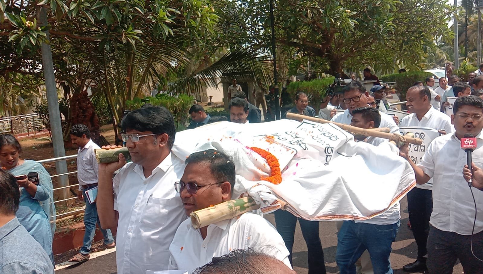 ଓଡ଼ିଆ ନ୍ୟୁଜ୍: SCB ଟ୍ରାଜେଡି: ବିଧାନସଭାରେ ପ୍ରତିକାତ୍ମକ କୋକେଇ ଶୋଭାଯାତ୍ରା। ବିରୋଧୀ ବିଜେଡି ପକ୍ଷରୁ କୋକେଇ ଶୋଭାଯାତ୍ରା।ରାମ ନାମ ସତ୍ୟ ହେ’ ଧ୍ୱନିରେ ପ୍ରକମ୍ପିତ ବିଧାନସଭା ପରିସର।