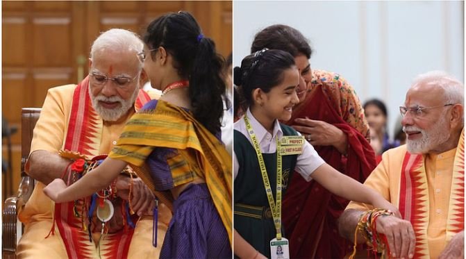ପ୍ରଧାନମନ୍ତ୍ରୀ ମୋଦି ଦିଲ୍ଲୀର ପ୍ରଧାନମନ୍ତ୍ରୀ ବାସଭବନ ୭ ଲୋକ କଲ୍ୟାଣ ମାର୍ଗରେ ରକ୍ଷା ବନ୍ଧନ ପାଳନ କରିଥିଲେ। ଏହି ସମୟରେ ବ୍ରହ୍ମା କୁମାରୀ ଦିଦି ପ୍ରଧାନମନ୍ତ୍ରୀ ମୋଦିଙ୍କୁ ରାକ୍ଷୀ ବାନ୍ଧିଥିଲେ। ଏହା ବ୍ୟତୀତ ଛୋଟ ଝିଅମାନେ ମଧ୍ୟ ପ୍ରଧାନମନ୍ତ୍ରୀ ମୋଦିଙ୍କୁ ରାକ୍ଷୀ ବାନ୍ଧିଥିଲେ। ପ୍ରଧାନମନ୍ତ୍ରୀ ସ୍କୁଲ ପୋଷାକ ପିନ୍ଧିଥିବା ସ୍କୁଲ ଝିଅମାନଙ୍କ ସହିତ ହୃଦୟସ୍ପର୍ଶୀ ଫଟୋ ଉଠାଇଥିଲେ।